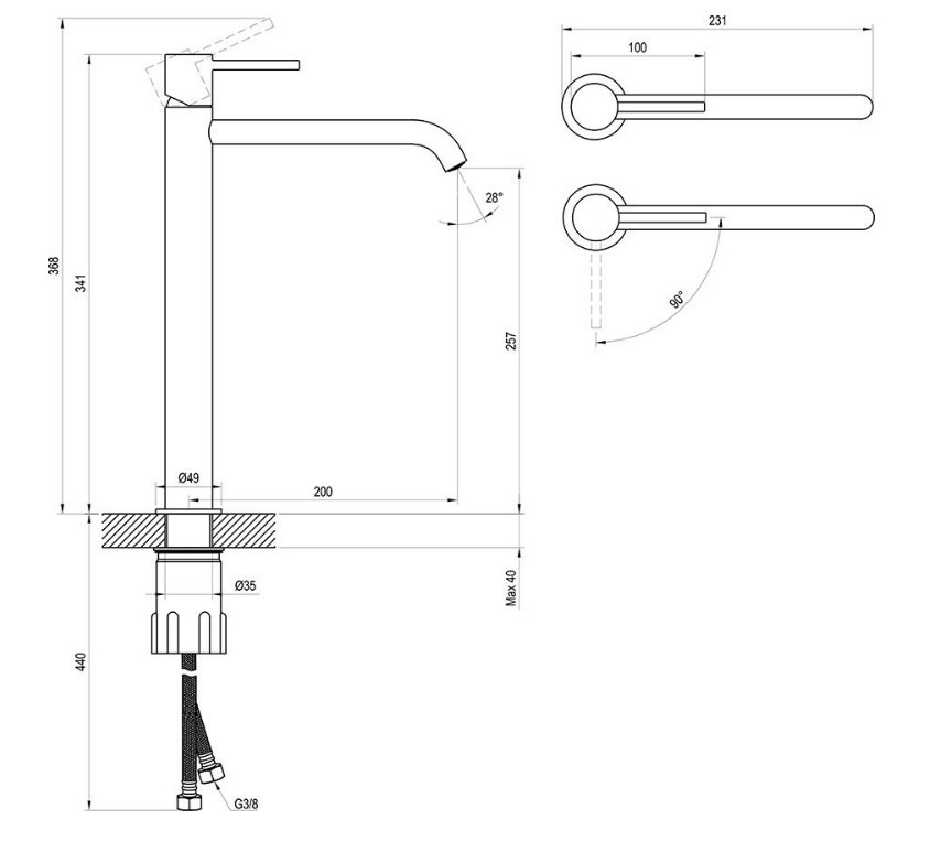 a csaptelep magassága: 341 mm