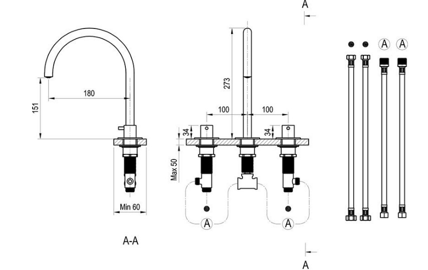 csatlakozótömlők: hajlékony 450 mm, átmérő: DN6, G3/8