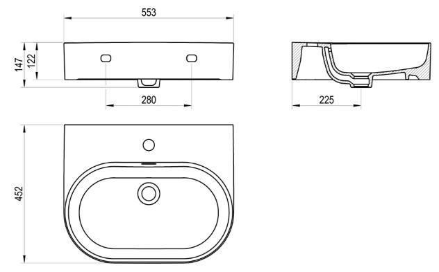 A Ceramic Slim Wall O N vékony falú mosdó minőségi kerámiából készült és falra szerelhető vagy I alakú mosdó alatti lapra történő beépítésre szolgál.
