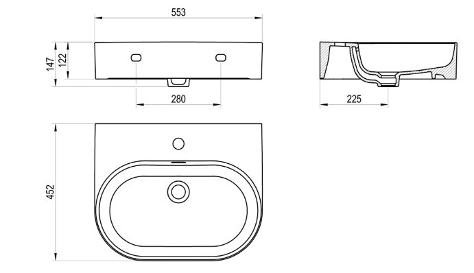 A Ceramic Slim Wall O N vékony falú mosdó minőségi kerámiából készült és falra szerelhető vagy I alakú mosdó alatti lapra történő beépítésre szolgál.