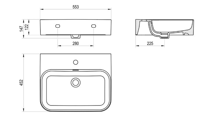 A Ceramic Slim Wall R N vékony falú mosdó minőségi kerámiából készült és falra szerelhető vagy I alakú mosdó alatti lapra történő beépítésre szolgál.