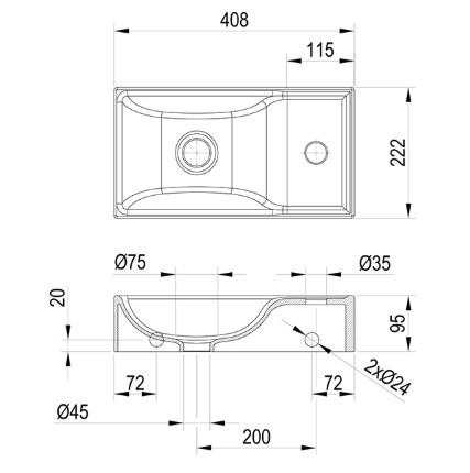 A Veda Wall mosdó nem rendelkezik túlfolyóval, ezért fix mosdólefolyó és álló mosdócsaptelep használata szükséges.