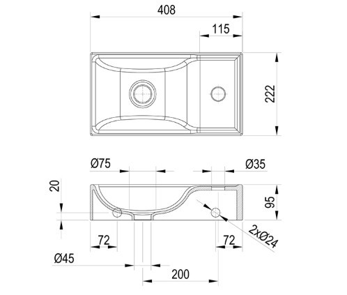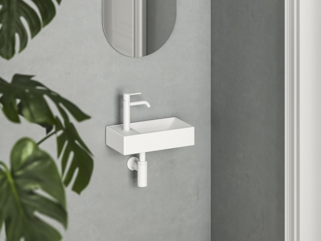 A Veda Wall mosdó nem rendelkezik túlfolyóval, ezért fix mosdólefolyó és álló mosdócsaptelep használata szükséges.