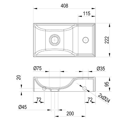 A Veda Wall mosdó nem rendelkezik túlfolyóval, ezért fix mosdólefolyó és álló mosdócsaptelep használata szükséges.