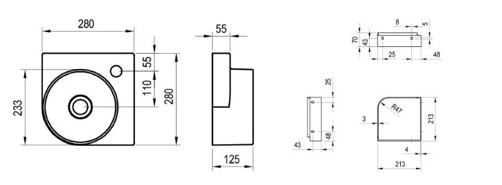 A Yard 28 C mosdó minőségi kerámiából készült és a Yard 28 C konzolra történő telepítésre szolgál, a mosdót nem lehet önállóan a falra függeszteni.