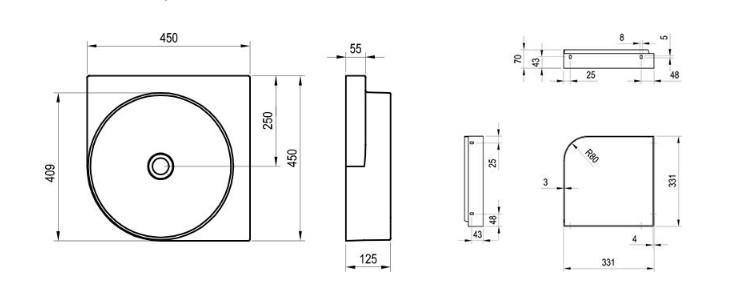 A Yard 45 C mosdó minőségi kerámiából készült és a Yard 45 C konzolra van telepítve, a mosdót nem lehet önállóan a falra függeszteni.