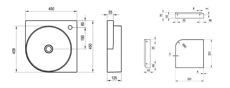 A Yard 45 C mosdó minőségi kerámiából készült és a Yard 45 C konzolra van telepítve, a mosdót nem lehet önállóan a falra függeszteni.