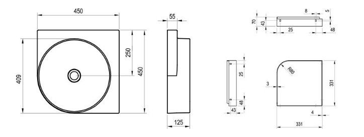 A Yard 45 C mosdó minőségi kerámiából készül, és a Yard 45 C konzolra történő telepítésre szolgál, a mosdót nem lehet önállóan a falra függeszteni.
