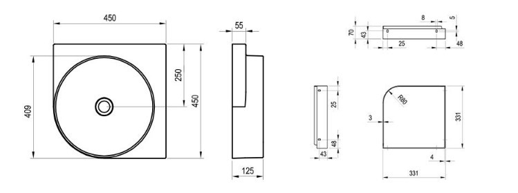 A Yard 45 C mosdó minőségi kerámiából készül, és a Yard 45 C konzolra történő telepítésre szolgál, a mosdót nem lehet önállóan a falra függeszteni.