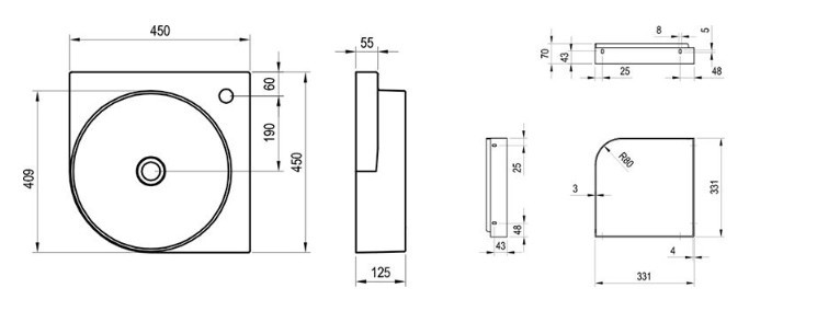 A Yard 45 C mosdó minőségi kerámiából készült és a Yard 45 C konzolra van telepítve, a mosdót nem lehet önállóan a falra függeszteni.