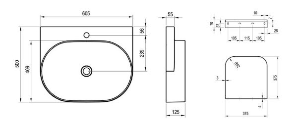 Méretek (szélesség x magasság x mélység): 60,5 x 50 x 12,5 cm