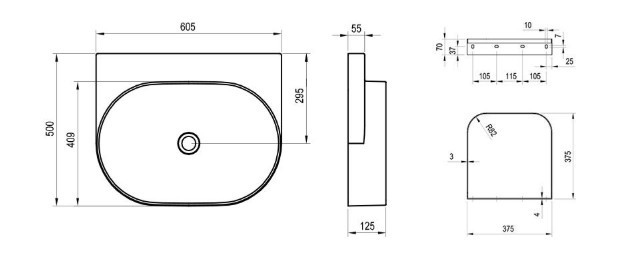 Méretek (szélesség x magasság x mélység): 60,5 x 50 x 12,5 cm