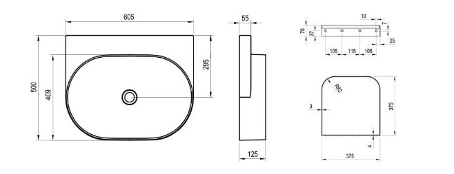 Méretek (szélesség x magasság x mélység): 60,5 x 50 x 12,5 cm