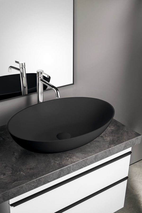 Mosdó, Sapho Banera Oval öntött márvány mosdó 60x40 cm, matt antracit 14397.51
