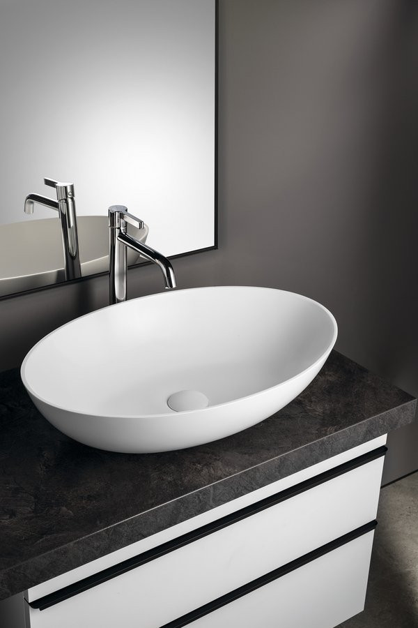 Mosdó, Sapho Banera Oval öntött márvány mosdó 60x40 cm, matt fehér 14397MAT