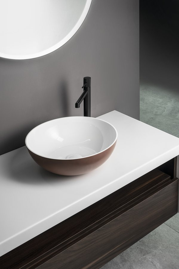 Mosdó, Sapho Banera Round öntött márvány mosdó 39 cm, fehér/matt barna 14337.72