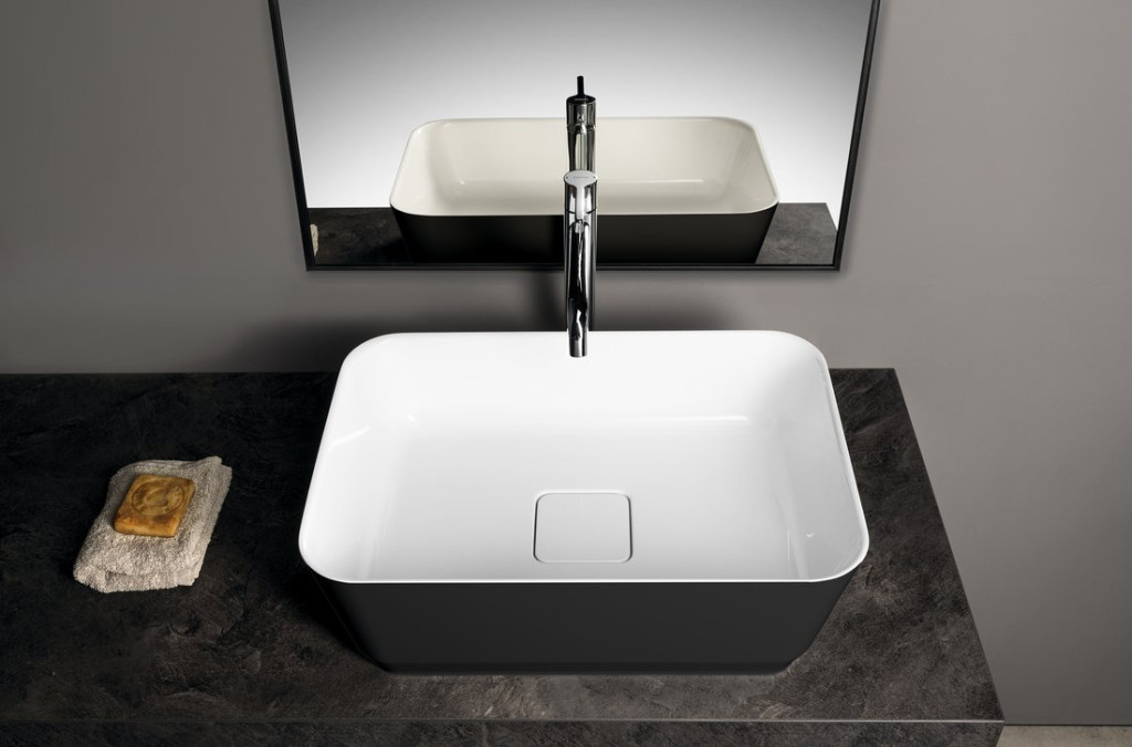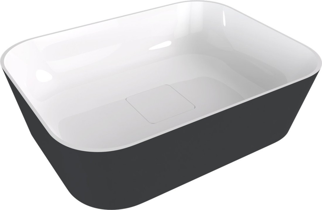 Mosdó, Sapho Banera Square öntött márvány mosdó 50x36 cm, fehér/matt antracit 14596.52