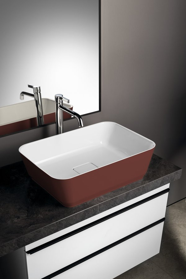 Mosdó, Sapho Banera Square öntött márvány mosdó 50x36 cm, fehér/matt barna 14596.72
