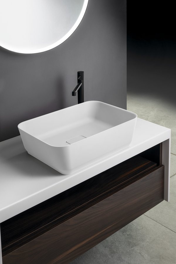 Mosdó, Sapho Banera Square öntött márvány mosdó 50x36 cm, matt fehér 14596MAT
