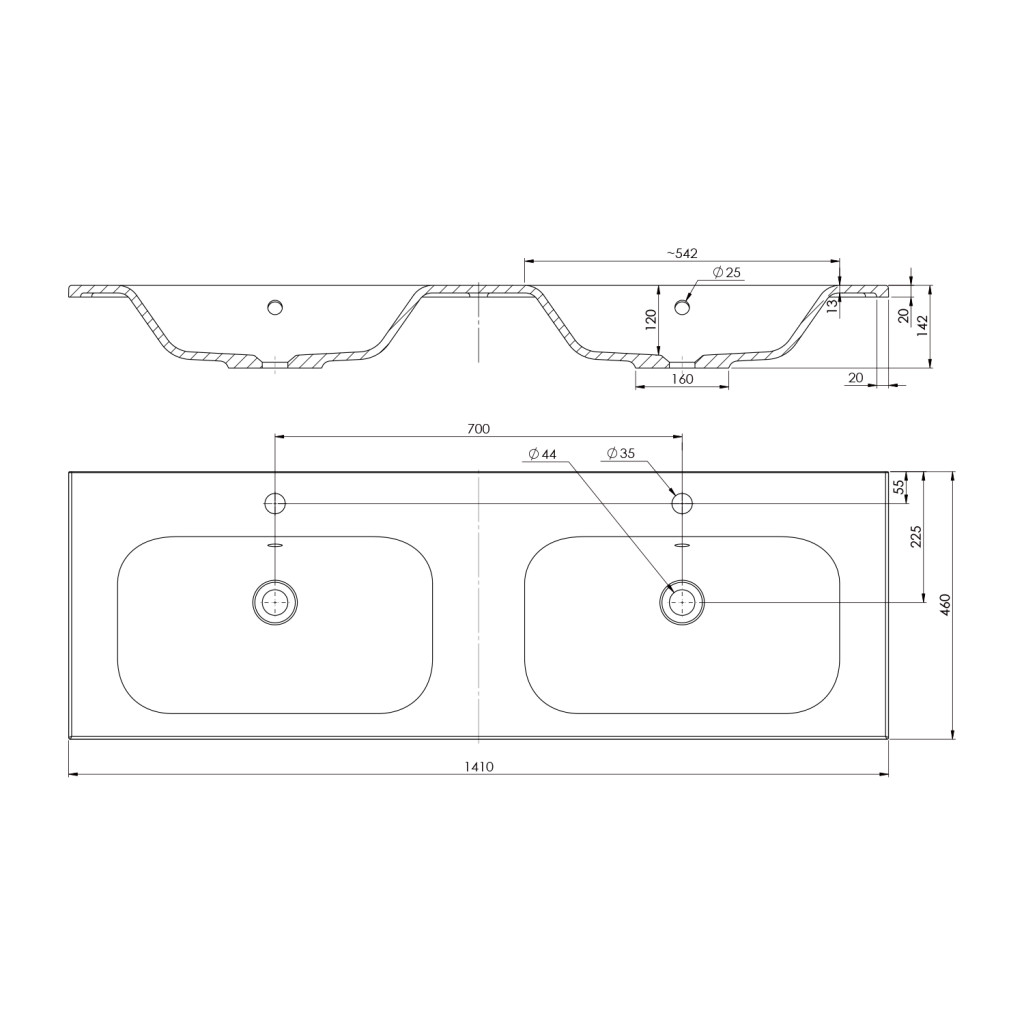Mosdó, Sapho Sidra öntött márvány duplamosdó 141x46 cm SD141