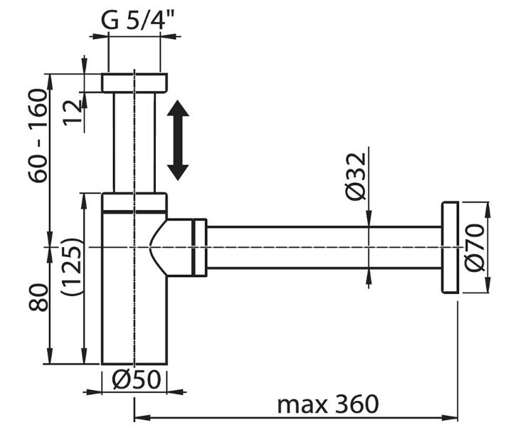 A szifon teleszkópos teste univerzális használatot tesz lehetővé a lapra szerelt mosdókagylókhoz és a falra szerelt mosdókagylókhoz, amelyeket nem kombinálnak szekrénnyel.
