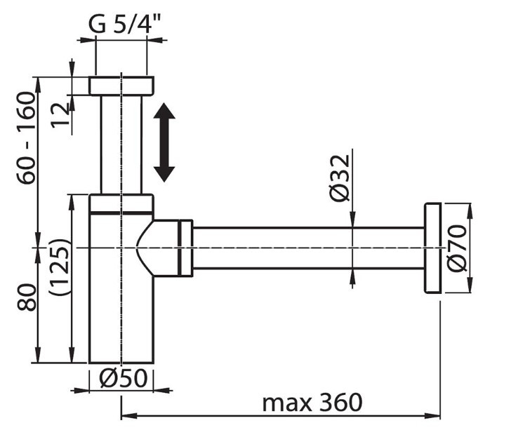A szifon teleszkópos teste univerzális használatot tesz lehetővé a lapra szerelt mosdókagylókhoz és a falra szerelt mosdókagylókhoz, amelyeket nem kombinálnak szekrénnyel.