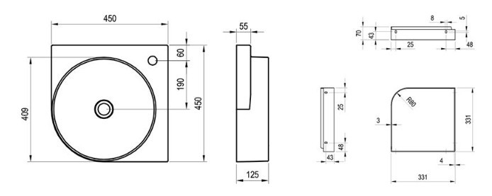 A Yard 45 C mosdó minőségi kerámiából készült és a Yard 45 C konzolra van telepítve, a mosdót nem lehet önállóan a falra függeszteni.