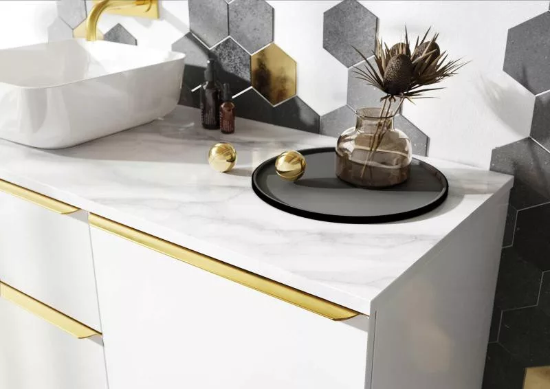 A kompakt márvány 97% újrahasznosított márványőrlemény és 3% természetes gyanta keverékéből készül. a terméket pult kivágás nélkül szállítjuk, a mosdó/csaptelep helyét a helyszínen kell kivágni.
