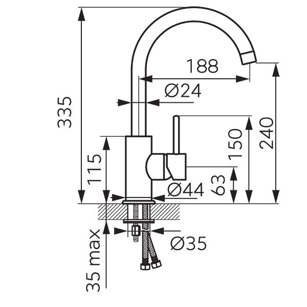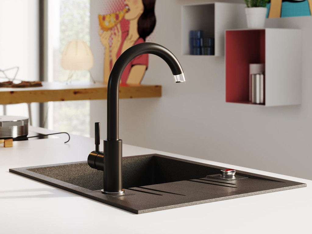 Mosogató csaptelep, Ferro LUGIO BLG4BL álló konyhai csaptelep, fekete