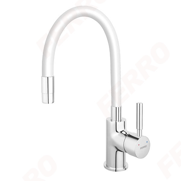 Mosogató csaptelep, Ferro Zumba elasztikus fehér kifolyóval BZA4W x