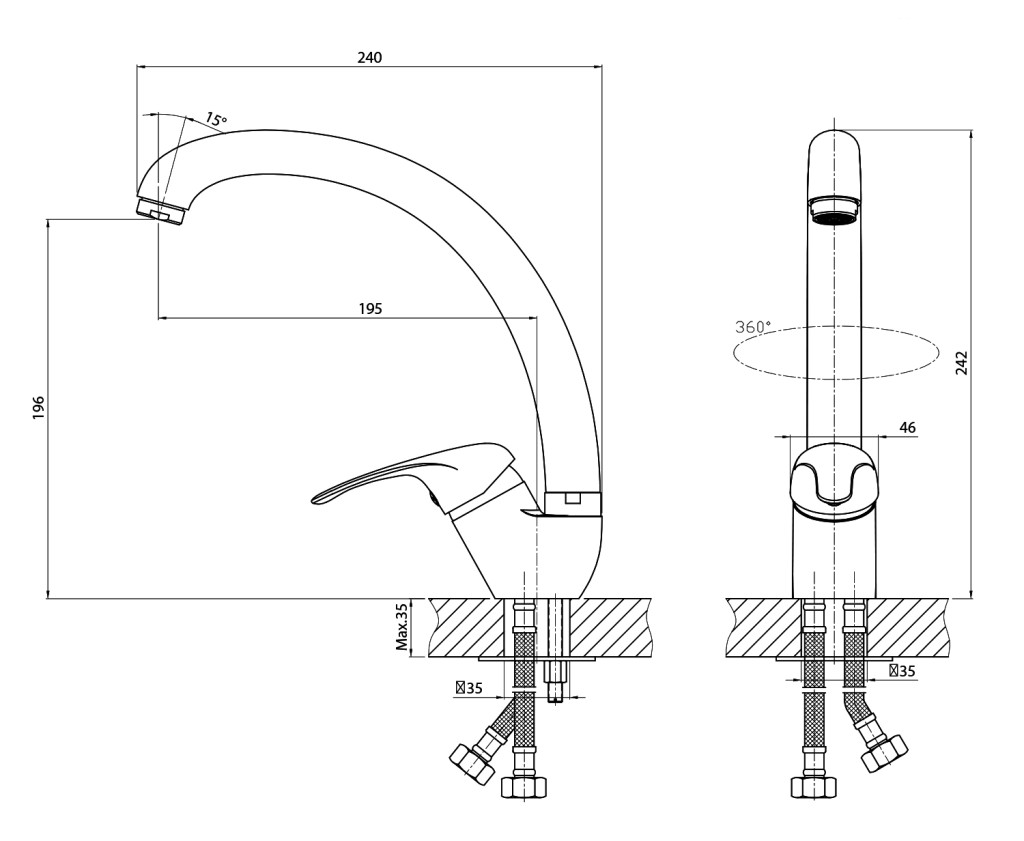 Mosogató csaptelep, Sapho AQUALINE KASIOPEA 35 mosogató-csaptelep, króm 1107-65