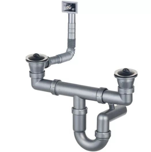 Mosogató szifon, Deante szifon teletetős, acél mosogatókhoz, 2 medencés, leeresztő 2" ZXY_9924