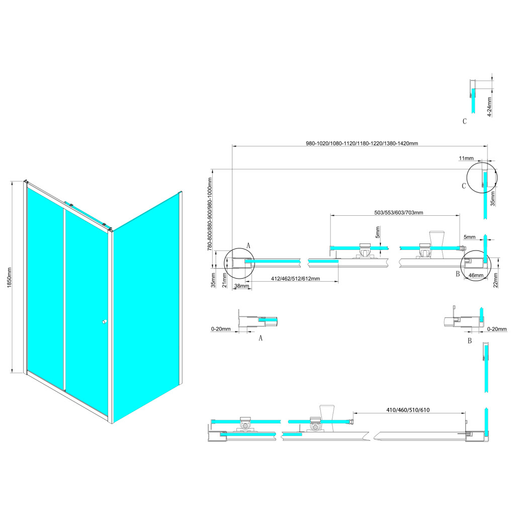 Oldalfal, Aqualine Ugga oldalfal, 80x185 cm, átlátszó üveggel ATP80