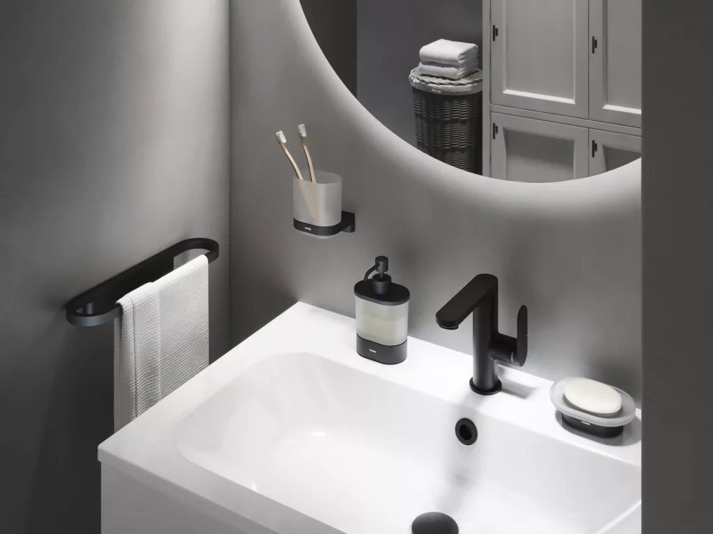 A tartó belső oldala műanyag gyűrűvel van ellátva az üvegedény puha illeszkedése érdekében.