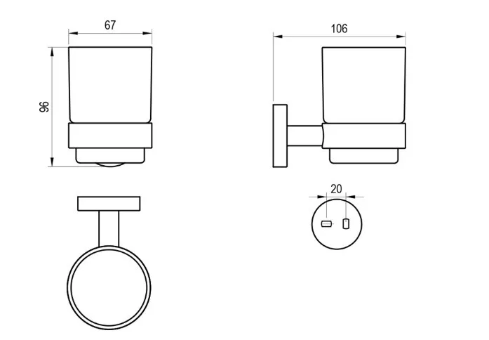 A tartó belső oldala műanyag gyűrűvel van ellátva az üvegedény puha illeszkedése érdekében.