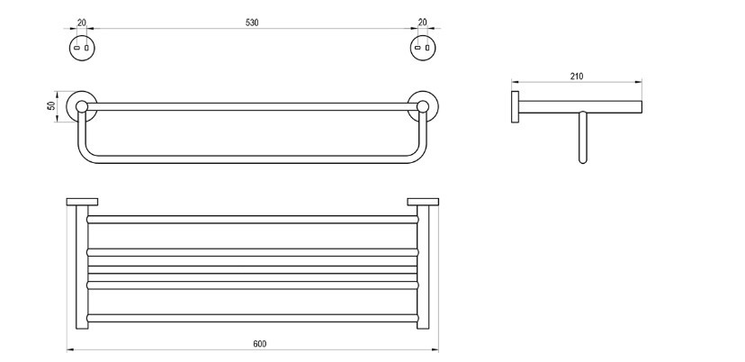 A törölköző- és fürdőlepedőtartó rúddal ellátott polc négy tipli és két beállító fém rögzítőlemez segítségével kerül felszerelésre.