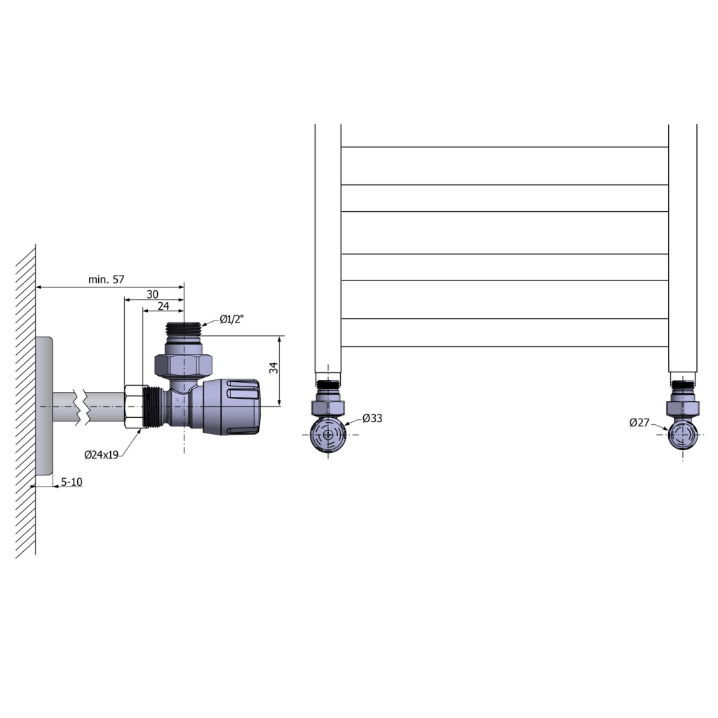 Radiátor szelep, Aqualine ECO csatlakozó készlet, nikkel/fehér CP9810S