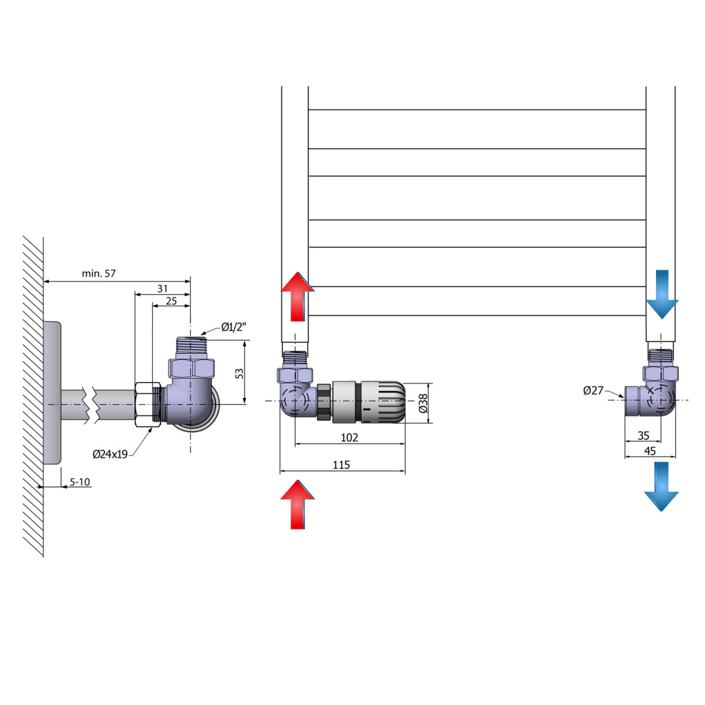 Radiátor szelep, Aqualine ECO csatlakozó készlet termosztáttal, balos, nikkel/fehér CP9911LS