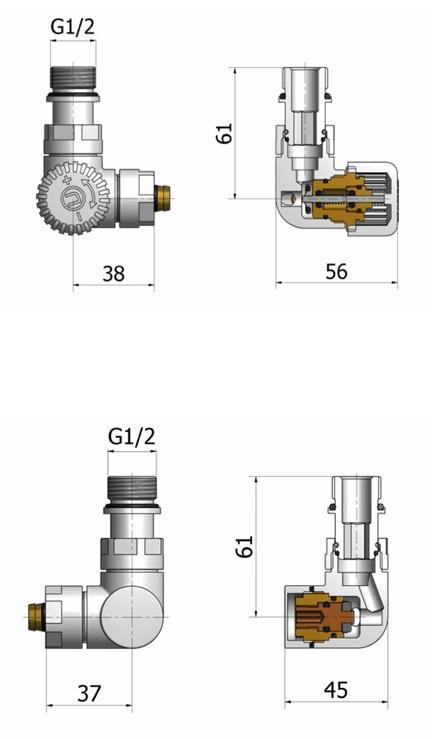 Radiátor szelep, AREZZO design CORNERPEX/VISION radiátor szelep fehér, jobb AR-CORNERPEX-W-R