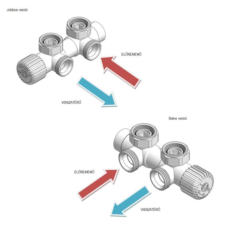 A szelep kialakítása lehetővé teszi, hogy azt a radiátor alá, a fallal párhuzamosan, a radiátor kontúrján belül helyezzék el.