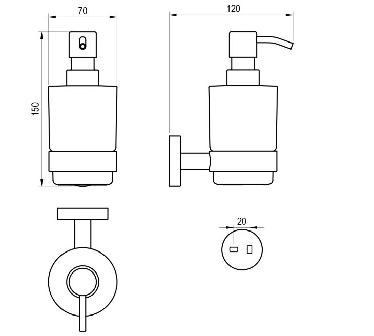 A szappanadagolós tartó két tipli és egy beállító fém rögzítőlemez segítségével kerül felszerelésre.