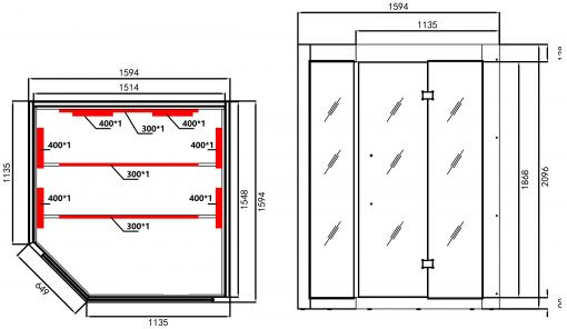 Belső méret: 151,4×107,5×61,6×107,8×154,8×186,8 cm