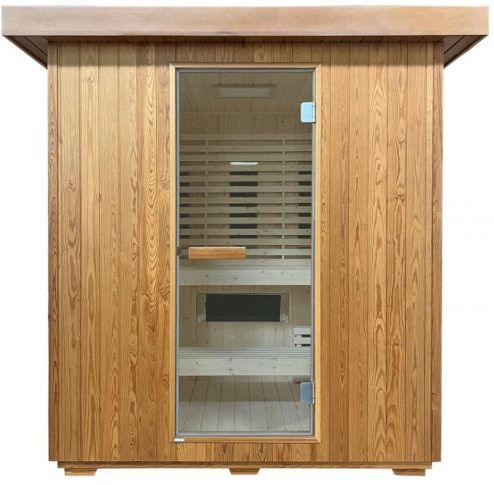 – kívül: hőkezelt lucfenyő, 8 mm-es biztonsági üveg, bitumenes zsindely