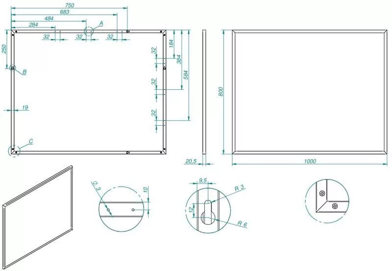 Tükör, AREZZO design Fordítható tükör keretben 100/80, fekete,19 mm, fordítható