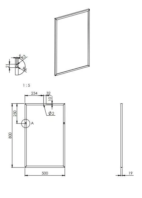 Tükör, AREZZO design Keretes tükör 50/80, fekete, 19 mm