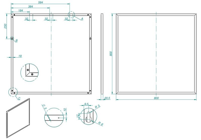 Tükör, AREZZO design Keretes tükör 80/80, fekete, 19 mm