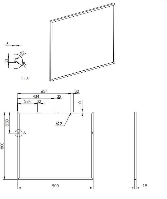 Tükör, AREZZO design Keretes tükör 90/80, fekete, 19 mm