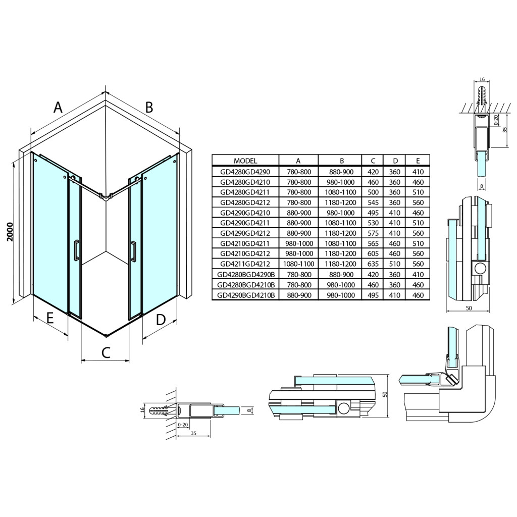 Zuhanyajtó, Sapho Gelco Dragon tolóajtó matt fekete/transzparent 90 cm GD4290B