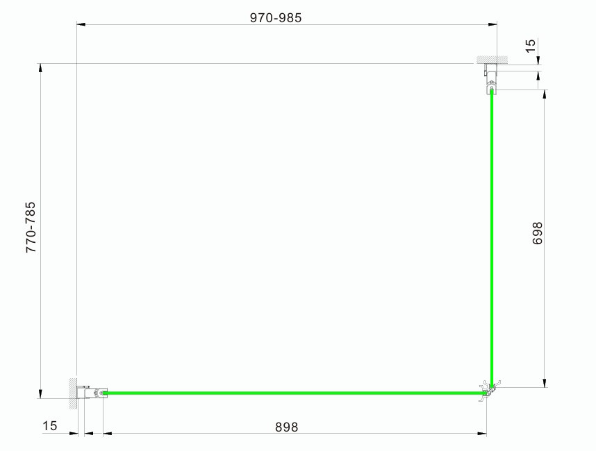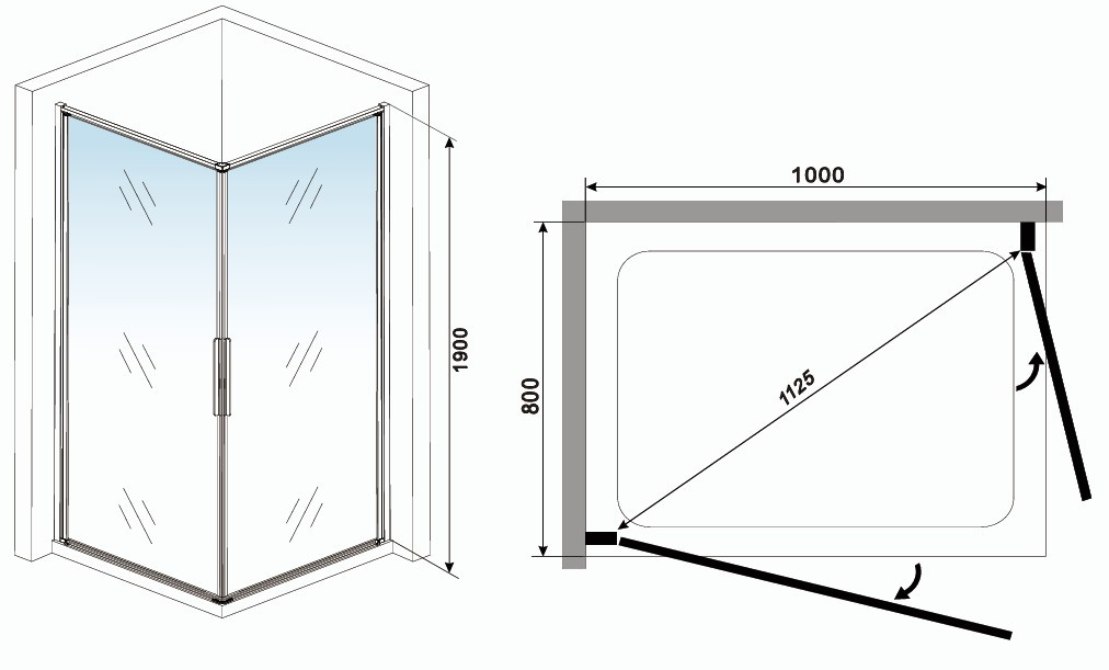 Zuhanykabin kifelé-befelé nyíló ajtóval