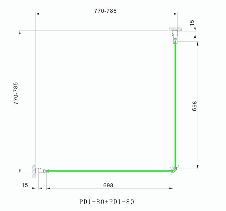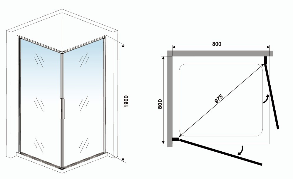 Zuhanykabin kifelé-befelé nyíló ajtóval